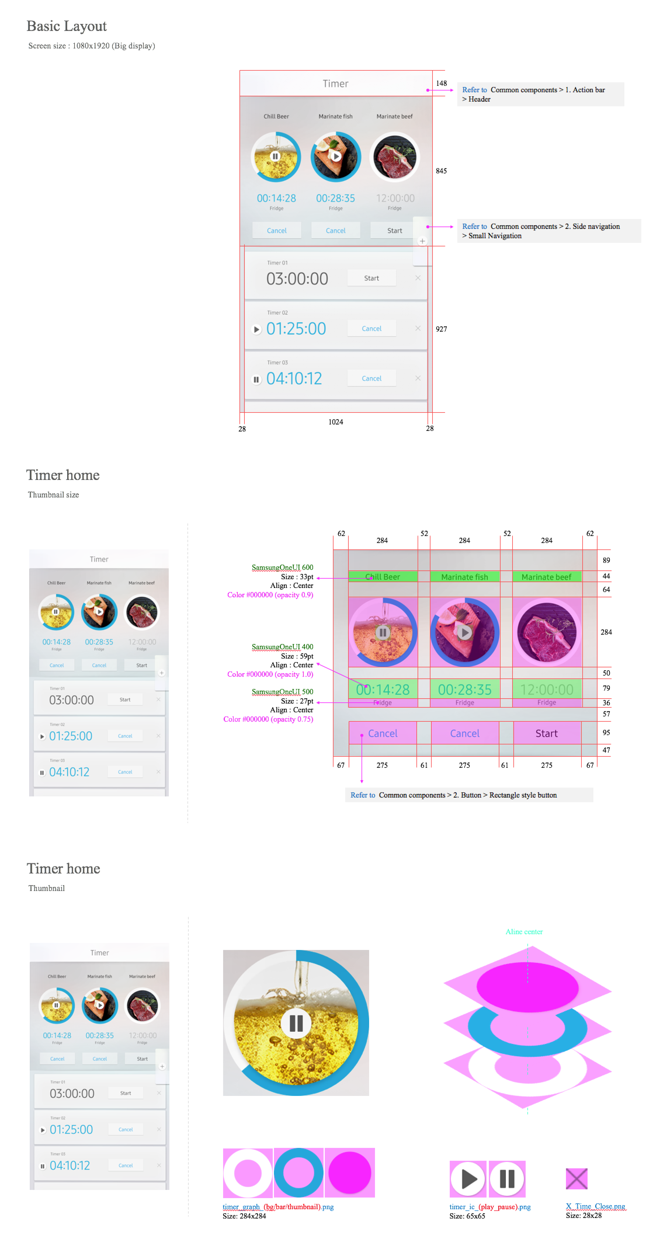 The fridge UI is designed in a grid like format. In order for this to be built, I had to design specification for engineers